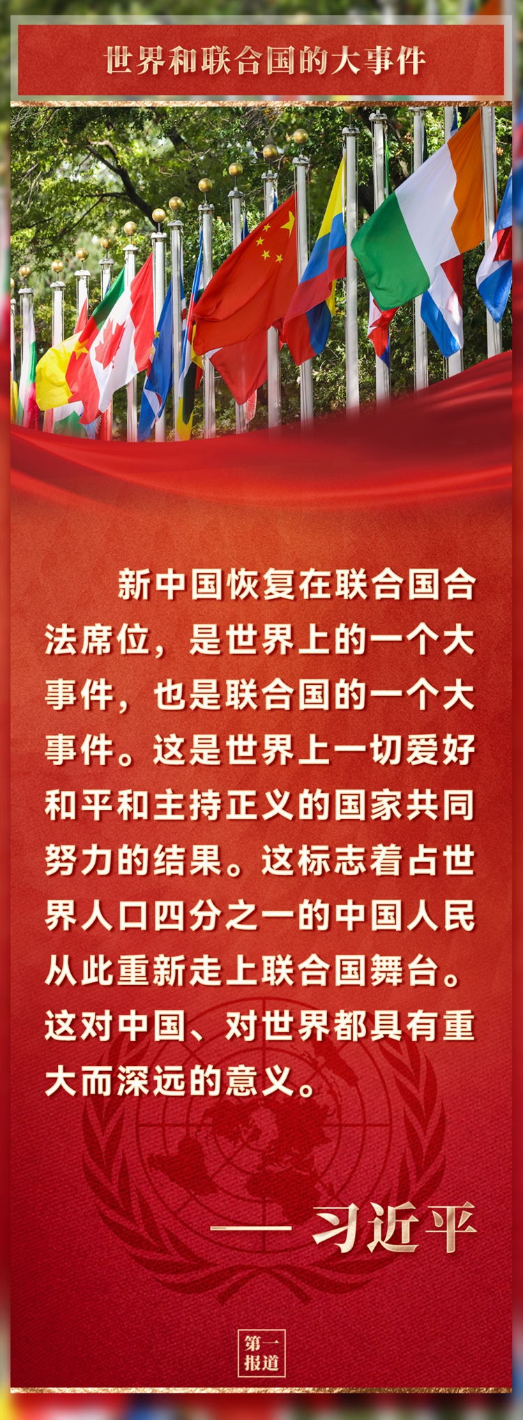 50年前的今天,第二十六屆聯(lián)合國大會(huì)以壓倒性多數(shù)通過第2758號(hào)決議,決定恢復(fù)中華人民共和國在聯(lián)合國的一切權(quán)利,承認(rèn)中華人民共和國政府代表是中國在聯(lián)合國的唯一合法代表。這是中國人民的勝利,也是世界各國人民的勝利!
