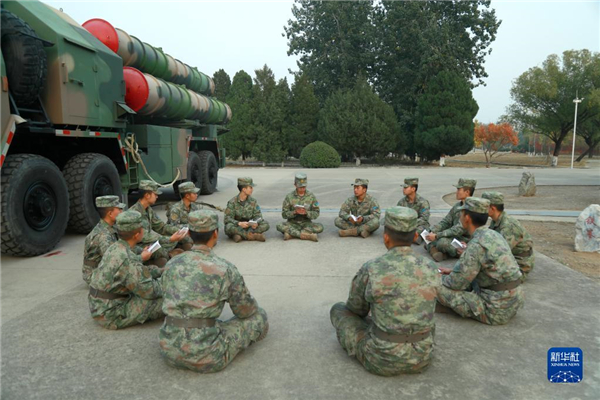 中共中央總書記、國家主席、中央軍委主席習(xí)近平24日下午出席軍隊領(lǐng)導(dǎo)干部會議時發(fā)表的重要講話,在解放軍和武警部隊引起強烈反響。這是中部戰(zhàn)區(qū)空軍“模范地空導(dǎo)彈營”開展“鳴鏑講堂”交流活動,積極組織官兵學(xué)習(xí)習(xí)主席重要講話(10月25日攝)。新華社發(fā)(趙勝之 攝)