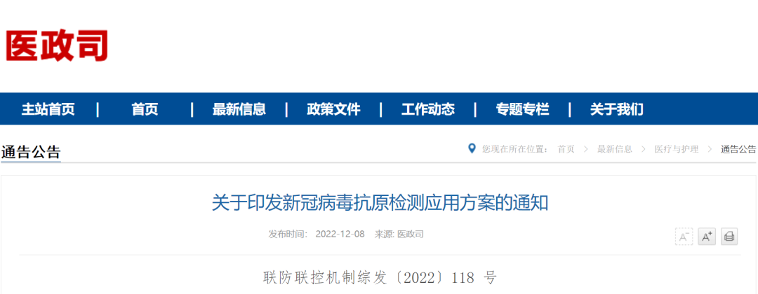 為進(jìn)一步優(yōu)化新冠病毒檢測策略,做好防控工作,國務(wù)院應(yīng)對(duì)新型冠狀病毒肺炎疫情聯(lián)防聯(lián)控機(jī)制綜合組制定了《新冠病毒抗原檢測應(yīng)用方案》,現(xiàn)印發(fā)給你們,請(qǐng)認(rèn)真組織實(shí)施。