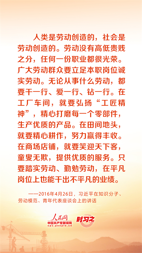 人民創(chuàng)造歷史,勞動(dòng)開(kāi)創(chuàng)未來(lái)。黨的十八大以來(lái),習(xí)近平總書(shū)記始終心系全國(guó)廣大勞動(dòng)者,激勵(lì)廣大勞動(dòng)者在平凡崗位上續(xù)寫(xiě)不平凡的故事。在“五一”國(guó)際勞動(dòng)節(jié)到來(lái)之際,讓我們重溫總書(shū)記的諄諄話語(yǔ),用辛勤勞動(dòng)為經(jīng)濟(jì)社會(huì)發(fā)展貢獻(xiàn)力量。FeR安康新聞網(wǎng)