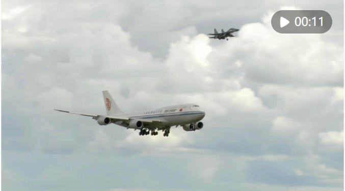 習(xí)近平乘坐的專(zhuān)機(jī)進(jìn)入哈薩克斯坦領(lǐng)空后,哈薩克斯坦空軍戰(zhàn)機(jī)升空護(hù)航。