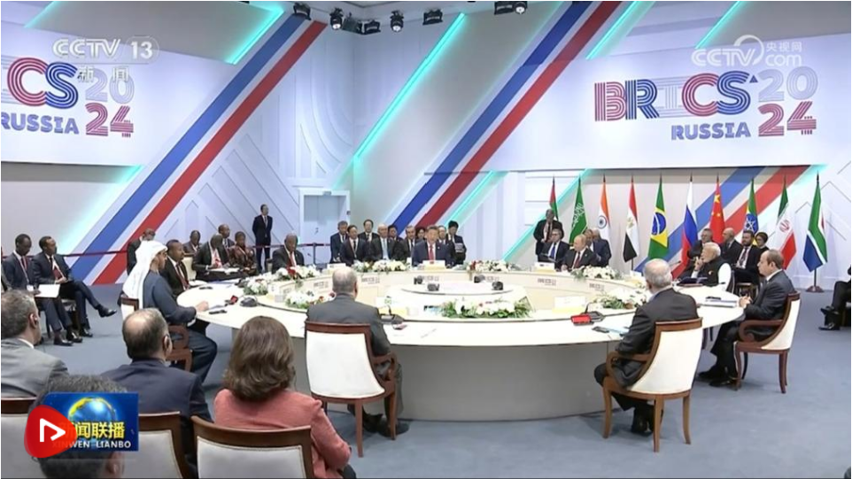 當(dāng)?shù)貢r間10月23日上午,金磚國家領(lǐng)導(dǎo)人第十六次會晤在喀山會展中心舉行。俄羅斯總統(tǒng)普京主持會晤。中國國家主席習(xí)近平、巴西總統(tǒng)盧拉(線上)、埃及總統(tǒng)塞西、埃塞俄比亞總理阿比、印度總理莫迪、伊朗總統(tǒng)佩澤希齊揚(yáng)、南非總統(tǒng)拉馬福薩、阿聯(lián)酋總統(tǒng)穆罕默德等出席。