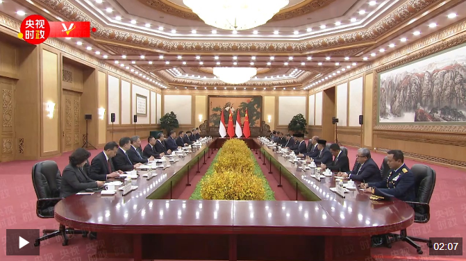 習(xí)近平指出,很高興再次同普拉博沃總統(tǒng)見面。你在今年3月當(dāng)選總統(tǒng)后第一時(shí)間首訪中國,正式就職后又首先對(duì)中國進(jìn)行國事訪問,實(shí)現(xiàn)了我們的“北京之約”,體現(xiàn)了你對(duì)發(fā)展中印尼關(guān)系的重視,也展現(xiàn)了兩國關(guān)系的高水平和戰(zhàn)略性。相信在你和新一屆政府有力領(lǐng)導(dǎo)下,印度尼西亞將堅(jiān)持獨(dú)立自主的發(fā)展道路,在實(shí)現(xiàn)國家富強(qiáng)、民族復(fù)興征程上不斷取得新成就。在國際和地區(qū)舞臺(tái)上發(fā)揮更重要作用,朝著“黃金印尼2045”目標(biāo)邁進(jìn)。