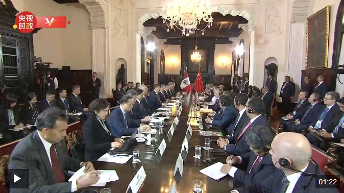 當(dāng)?shù)貢r(shí)間11月14日下午,國(guó)家主席習(xí)近平在利馬總統(tǒng)府同秘魯總統(tǒng)博魯阿爾特舉行會(huì)談。