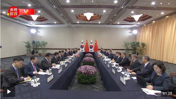 習(xí)近平指出,這是2022年巴厘島之后我們時(shí)隔兩年再次會(huì)晤。過去兩年,國(guó)際和地區(qū)形勢(shì)發(fā)生不少變化。無論形勢(shì)如何變化,中韓都應(yīng)該堅(jiān)守建交初心,堅(jiān)定睦鄰友好方向,堅(jiān)持互利共贏目標(biāo),發(fā)揮地理相鄰、文化相通、經(jīng)濟(jì)相融優(yōu)勢(shì),加強(qiáng)交流,深化合作,推動(dòng)中韓戰(zhàn)略合作伙伴關(guān)系健康穩(wěn)定發(fā)展,更好造福兩國(guó)人民,為促進(jìn)地區(qū)和平穩(wěn)定和發(fā)展繁榮作出更大貢獻(xiàn)。