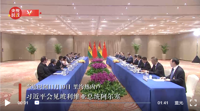 當?shù)貢r間11月19日,國家主席習近平在里約熱內(nèi)盧出席二十國集團領導人峰會期間會見玻利維亞總統(tǒng)阿爾塞。
