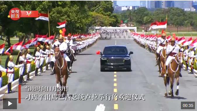 當(dāng)?shù)貢r(shí)間11月20日,習(xí)近平主席乘車抵達(dá)巴西總統(tǒng)官邸,出席盧拉舉行的歡迎儀式。