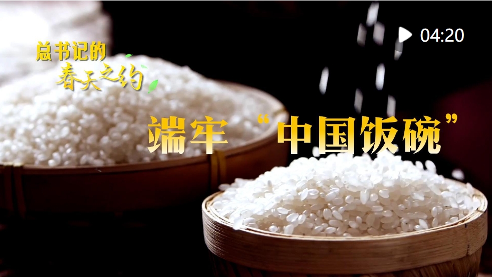 把穗觀粒,察土問技,習(xí)近平總書記始終惦念糧食安全。2018年9月,總書記再次踏上這片沃土。他走進稻田,拿起一把稻穗,看稻粒、觀成色。他說:“中國人要把飯碗端在自己手里,而且要裝自己的糧食。”