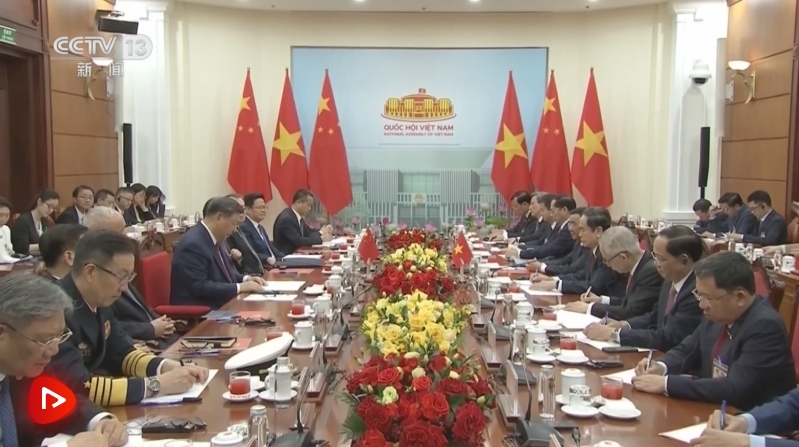 習(xí)近平指出,再次對越南進(jìn)行國事訪問,親眼見證了越南革新事業(yè)取得的新成就,親身感受到中越友好的深厚根基。當(dāng)前,中國正在以中國式現(xiàn)代化全面推進(jìn)強(qiáng)國建設(shè)、民族復(fù)興偉業(yè),越南即將開啟民族發(fā)展新紀(jì)元,雙方都處在各自發(fā)展振興的關(guān)鍵時(shí)期。面對變亂交織的國際形勢,中越兩國要堅(jiān)定道路自信和制度自信,加強(qiáng)團(tuán)結(jié)協(xié)作,持續(xù)深化具有戰(zhàn)略意義的中越命運(yùn)共同體建設(shè),攜手邁向現(xiàn)代化,為世界注入更多穩(wěn)定性和正能量。