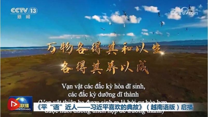 央視網消息(新聞聯(lián)播):在中共中央總書記、國家主席習近平對越南進行國事訪問之際,4月14日,由中國中央廣播電視總臺制作的《平“語”近人——習近平喜歡的典故》(越南語版)在越南啟播。慶祝中越建交75周年人文交流活動同日在河內舉行。越南總理范明政致賀信,對節(jié)目播出和活動成功舉辦表示祝賀。