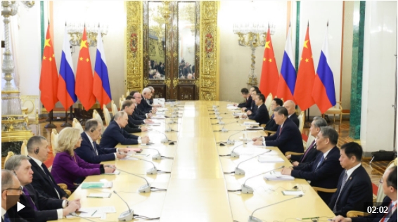 普京說:“尊敬的習(xí)近平主席,我的好朋友,俄中兩國人民在艱苦戰(zhàn)爭歲月中結(jié)成的戰(zhàn)斗情誼,是當(dāng)今俄中新時(shí)代全面戰(zhàn)略協(xié)作伙伴關(guān)系的根本基石之一。我們發(fā)展雙邊關(guān)系是為了造福兩國人民,而非針對任何第三方。構(gòu)建睦鄰友好、深化友誼、拓展合作,這是俄羅斯與中國基于戰(zhàn)略協(xié)作作出的共同選擇。”