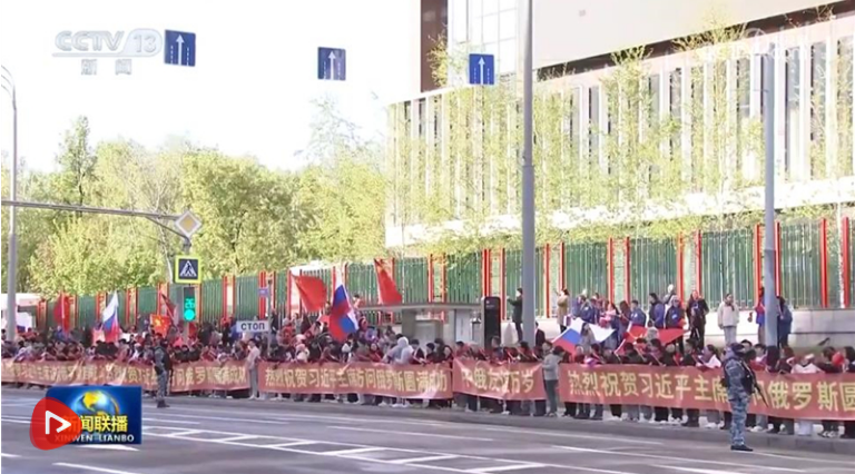 前往機(jī)場(chǎng)途中,當(dāng)?shù)孛癖娨约爸匈Y企業(yè)和留學(xué)生代表在道路兩旁揮舞中俄兩國國旗,熱烈祝賀習(xí)近平訪問俄羅斯取得圓滿成功。