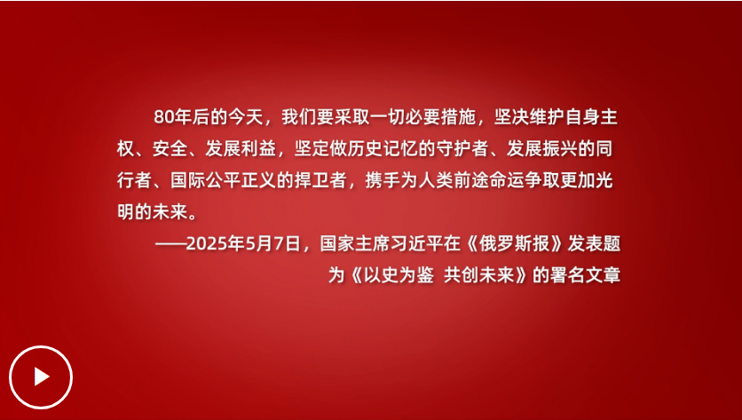 展望未來,在變亂交織的世界中,習(xí)近平強(qiáng)調(diào)“以史為鑒”,堅(jiān)定做歷史記憶的守護(hù)者、發(fā)展振興的同行者、國(guó)際公平正義的捍衛(wèi)者,攜手為人類前途命運(yùn)爭(zhēng)取更加光明的未來。