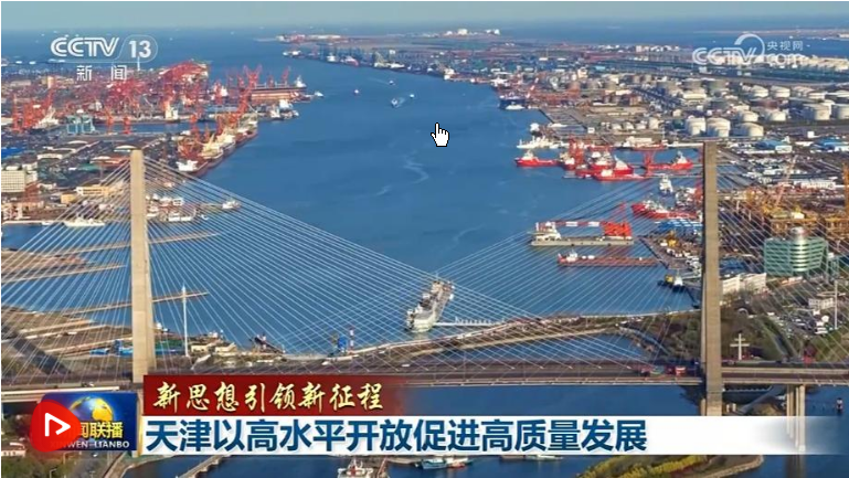 央視網(wǎng)消息(新聞聯(lián)播):習(xí)近平總書記指出,我們要全面提高對(duì)外開放水平,建設(shè)更高水平開放型經(jīng)濟(jì)新體制,形成國(guó)際合作和競(jìng)爭(zhēng)新優(yōu)勢(shì)。天津充分發(fā)揮自身區(qū)位優(yōu)勢(shì),穩(wěn)步擴(kuò)大制度型開放,努力打造開放層次更高、輻射作用更強(qiáng)的改革開放新高地,以高水平開放促進(jìn)高質(zhì)量發(fā)展。