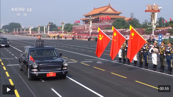 偉大旗幟光耀千秋。中國共產(chǎn)黨黨旗、中華人民共和國國旗、中國人民解放軍軍旗在受閱部隊(duì)最前方迎風(fēng)招展。檢閱車行進(jìn)至黨旗、國旗、軍旗前,敬禮號(hào)角響起,習(xí)近平停車肅立,以注目禮向三面旗幟莊嚴(yán)致敬。 Spp安康新聞網(wǎng)