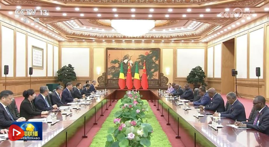 習近平強調(diào),剛果(布)擔任中非合作論壇非方共同主席國以來,同中方一道積極推動北京峰會成果落實,取得可喜成績。中方愿同非方共同實施好“十大伙伴行動”,打造綠色產(chǎn)業(yè)、電子商務和支付、科技、人工智能等新增長點,推動中非合作提質(zhì)升級。當前國際形勢變亂交織,中國和非洲作為全球南方重要成員,要肩負起捍衛(wèi)國際公平正義、維護世界和平、促進共同發(fā)展的歷史責任,攜手推動構(gòu)建人類命運共同體。