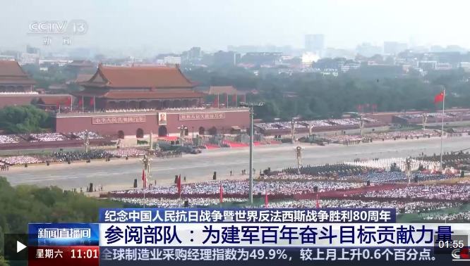 紀念中國人民抗日戰(zhàn)爭暨世界反法西斯戰(zhàn)爭勝利80周年大會9月3日隆重舉行。受閱部隊作為共和國武裝力量的代表,光榮接受了黨和人民的檢閱。中央軍委主席習(xí)近平簽署通令,嘉獎參閱全體人員。廣大參閱官兵備受鼓舞,一致表示,一定不負習(xí)主席重托,為如期實現(xiàn)建軍一百年奮斗目標、加快把人民軍隊建成世界一流軍隊不懈奮斗。