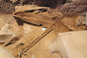 秦俑一號(hào)坑自1974年發(fā)現(xiàn)以來(lái),先后進(jìn)行了兩次正式發(fā)掘。2009年6月13日,沉寂了24年之久的秦俑一號(hào)坑迎來(lái)了第三次大規(guī)?脊虐l(fā)掘,目前共出土戰(zhàn)車2乘,陶馬3組12匹,陶俑170余件,小件器物近400件(組);清理戰(zhàn)鼓、篋、兵器柲、弓弩、箭箙、韜等重要遺跡數(shù)十處。