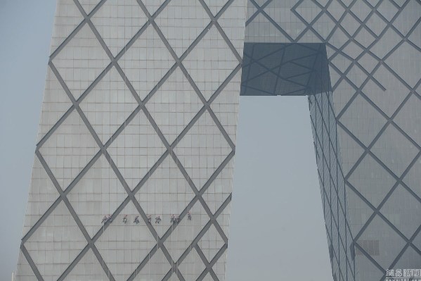 2015年4月9日消息,北京,近日有央視記者發(fā)微信說,央視新址大樓正在開始建成以來的首次外里面清洗,清洗費(fèi)用50萬元人民幣,耗時需要40天。圖為在央視大樓的外吊……