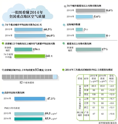 新京報訊 (記者金煜) 環(huán)保部昨日公布了去年重點區(qū)域和74個城市空氣質量狀況。去年全國PM2.5濃度有了普遍下降,京津冀區(qū)域PM2.5年均濃度降到93微克/立方米,雖然……
