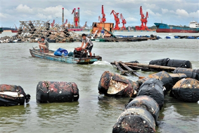 7月19日,受臺(tái)風(fēng)“威馬遜”影響,一條虎頭鯨受傷擱淺在廣東陽(yáng)江市海陵島附近海域,武警邊防官兵嘗試著將鯨魚送到深水區(qū)。昨日,廣西欽州漁民在搶修被臺(tái)風(fēng)破壞的……