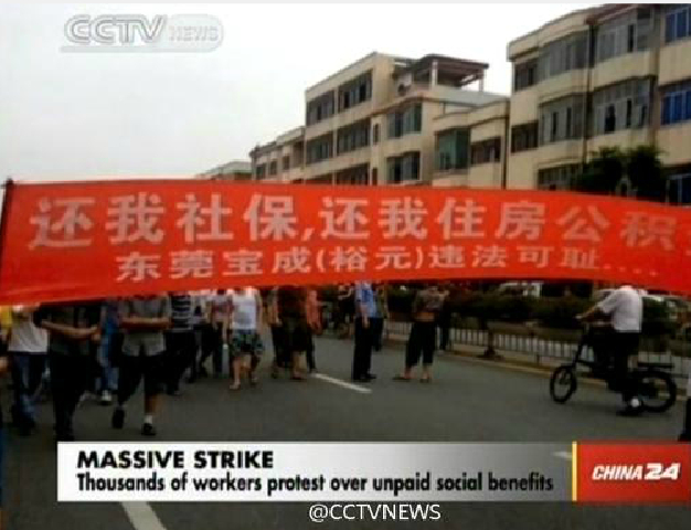 東莞最大鞋廠幾千工人抗議廠方社保標準過低5日,廣東東莞最大鞋廠—裕元鞋廠幾千名員工因質疑廠方以臨時工標準為工作十多年的員工購買社保,與員工簽訂無效……