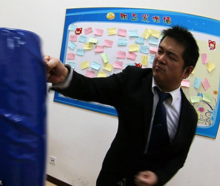 2014年1月7日,北京,12306客服中心,一接線員正在發(fā)泄不滿。圖片來源:CFP視覺中國2014年1月7日消息,北京。昨天,北京鐵路局召開春運(yùn)情況通報(bào)會(huì)。記者獲悉,北……