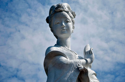 8月13日拍攝的漢白玉織女雕塑局部。近日,一座高14米(不含底座)、重200噸的漢白玉織女雕塑在湖北十堰鄖西縣七夕廣場落成?椗袼芫o挨廣場北側(cè)的銅牛,牛郎織……