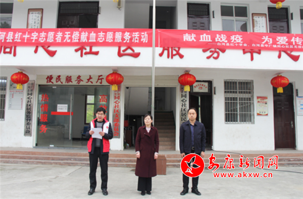 本網(wǎng)訊 3月24日上午,安康市中心血站聯(lián)合白河縣紅十字會、白河縣中廠鎮(zhèn)共同舉辦的“獻血戰(zhàn)疫 為愛傳遞”無償獻血進社區(qū)系列活動在白河縣同心社區(qū)正式啟動。安康市中心血站副站長詹勝萍、白河縣紅十字會常務副會長陶克庭、中廠鎮(zhèn)黨委書記張林沖出席啟動儀式,來自同心社區(qū)的五十多名村民代表參加了此次活動。