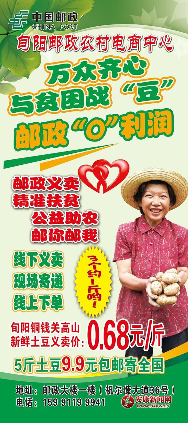 現(xiàn)在,旬陽郵政科學(xué)合理的解決供給矛盾:經(jīng)過實(shí)地考察后,為解決農(nóng)民銷路難題,積極響應(yīng)縣委、縣政府“打贏脫貧攻堅(jiān)戰(zhàn)”的號(hào)召,第一時(shí)間利用行業(yè)優(yōu)勢,通過“愛心義賣+愛心寄遞+線上訂單”活動(dòng)的方式將滯銷的土豆銷出去。