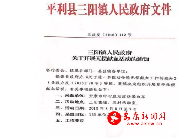 安康新聞網(wǎng)訊(通訊員 汪平)玫瑰予人,手留余香。8月8日-9日,伴隨著安康市中心血站獻血車在平利縣三陽鎮(zhèn)鎮(zhèn)頭村間蜿蜒,一顆顆愛心在涌動,一滴滴熱血在融情,文明奉獻之花齊開,和諧大愛之花怒放!M8z安康新聞網(wǎng)