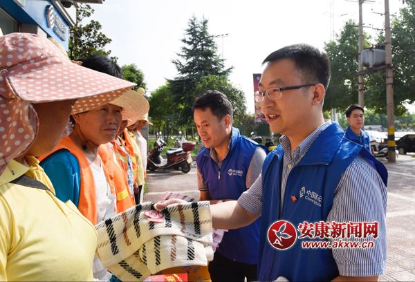 安康新聞網(wǎng)訊(通訊員 周冬梅 鄢妍)連日來,我市持續(xù)出現(xiàn)高溫天氣,最高氣溫超過40℃。安康移動(dòng)公司總經(jīng)理助理劉濤、黨委辦公室主任吳明科及分公司團(tuán)委委員頂著……