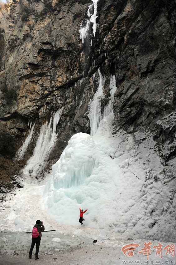 澇峪黑山現(xiàn)冰凍瀑布奇觀