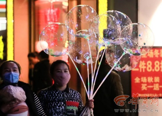 最近一款會(huì)發(fā)光的氣球在街頭流行,雖然漂亮但存在安全隱患,南京4名市民就被這種“網(wǎng)紅氣球”炸傷。近日,西安市工商局康復(fù)路工商所要求所在轄區(qū)批發(fā)市場(chǎng)的商戶下架這種發(fā)光氣球,因?yàn)樗鼘儆凇叭裏o產(chǎn)品”,且存在安全隱患。