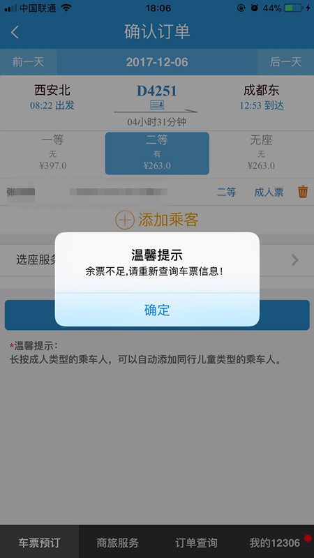 西部網(wǎng)、陜西頭條記者通過12306手機購票平臺查詢余票顯示,30分鐘后,當(dāng)日另一趟西安北至成都東的D4253次列車車票也已售罄。