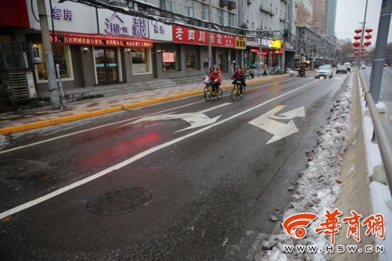 1月7日,在西安市咸寧路上,在寶馬車(chē)打滑的路段上,早上下雪后,下午已經(jīng)看不到積雪。 華商記者 鄧小衛(wèi) 攝影報(bào)道