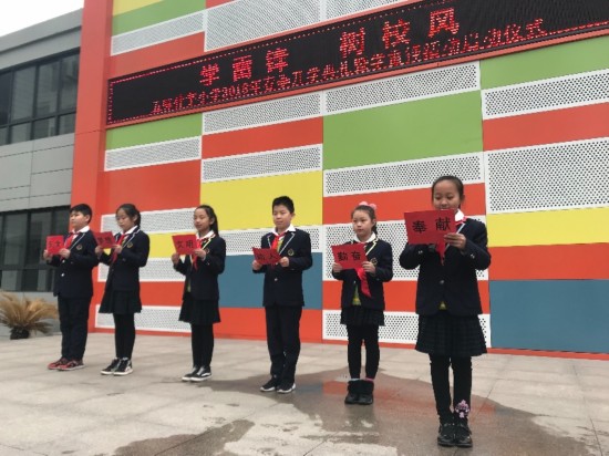 學(xué)生代表們通過誦讀將紅包里的心愿傳達(dá)給全校同學(xué)。接著,學(xué)生們飽含激情的朗誦《讓雷鋒精神綻放校園》,將學(xué)雷鋒和樹校風(fēng)進(jìn)行有機(jī)的結(jié)合。