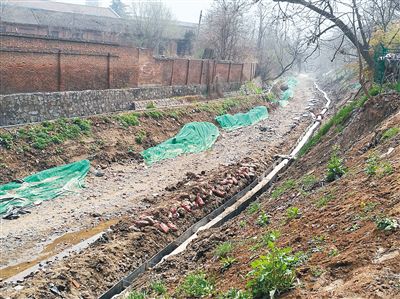 記者一行從位于臨潼建業(yè)家園小區(qū)南面的大秦建材批發(fā)市場(chǎng)直往北走,發(fā)現(xiàn)去年墻外的一片垃圾和臭水已經(jīng)不見了蹤影。之前排水管排出的臭水裸露在地面,臭水溝兩旁堆滿了生活垃圾,如今排水管口和長(zhǎng)長(zhǎng)的水泥管道連接在一起,排出的污水順著水泥管道直接從地下流走,已經(jīng)看不到污水的影子,也聞不見臭味,只聽到水泥管道里傳出嘩啦啦的水聲。兩邊的垃圾明顯被鏟車清運(yùn)了,現(xiàn)場(chǎng)還留下鏟車鏟過的痕跡。水泥管道的一大半已經(jīng)被埋在地下。