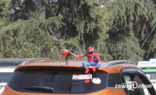 最近,不少寶雞私家車(chē)車(chē)主為了趕潮流,在自己的愛(ài)車(chē)車(chē)頂放上“蜘蛛俠”等玩偶。