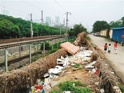 僅一護(hù)欄之隔,一邊是隴海鐵路線,一邊是綿延一百多米的垃圾堆。近日,有市民向本報(bào)反映,建章路隴海鐵路橋附近堆積著建筑垃圾和生活垃圾,不僅影響城市形象,也給附近居民出行帶來(lái)不便。