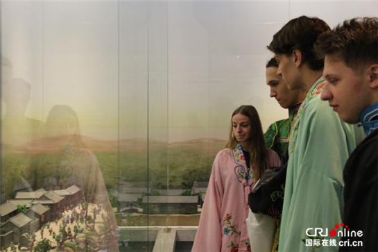 絲路青年觀看中國傳統(tǒng)民居微縮實(shí)景 (攝影 羅赟鵬)
