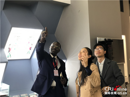塞內(nèi)加爾駐華大使館一等秘書(shū)夏赫·恩迪亞耶(左)了解渭南皮影戲(攝影 張琳瑞)