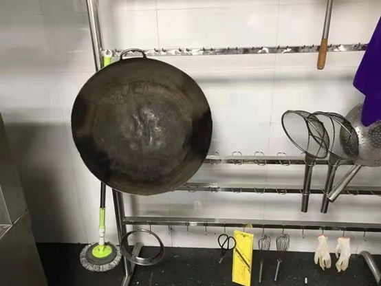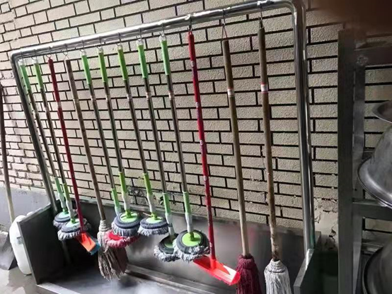 清洗煙罩專用拖把,有明確標(biāo)識(shí),統(tǒng)一懸掛在操作間室外東南角