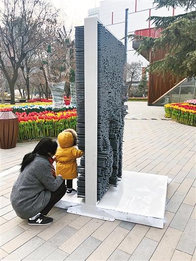 根據(jù)伍先生反映的情況,24日上午,記者來到位于高新區(qū)的創(chuàng)業(yè)咖啡街區(qū),在街區(qū)北側廣場上,記者看到伍先生提到的4座三維人體百變針雕。整個針雕是一個類似大相框的鐵架子,中間放置了上千根塑料材質的針管。人只要向這些針管靠進去,對面就會印出一個立體的人形,非常有趣。然而記者注意到,雖然每個大鐵框下方預留有螺絲孔,但卻沒有進行固定,F(xiàn)場,不時有孩子和市民好奇地在上面玩耍。