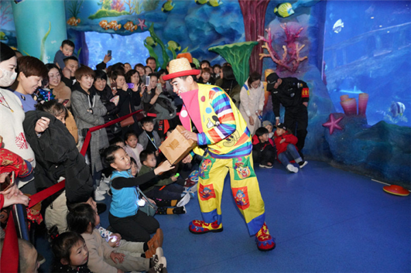 新春最少不了的是親子家庭合家歡,曲江海洋館舉辦的新春游園會,海洋滑稽節(jié)也是人頭攢動,家長們?nèi)页鰟訋е⒆釉诤5资澜鐣秤,更有幽默滑稽的演出和互動游戲增進(jìn)親子交流。