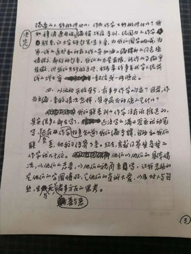賈平凹一直保留著手寫文稿的習(xí)慣,圖為他接受《新華每日電訊》草地副刊采訪時(shí),回復(fù)記者的手稿。