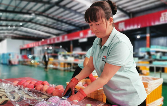 在頂端果業(yè)的生產(chǎn)車間里,一個(gè)個(gè)蘋果通過(guò)選果線,經(jīng)過(guò)測(cè)外觀、測(cè)糖酸比、測(cè)霉心等環(huán)節(jié)的智能篩選,“淘汰”不符合標(biāo)準(zhǔn)的蘋果,然后按照不同規(guī)格和需求,分流到各個(gè)渠道進(jìn)行包裝和對(duì)外銷售。