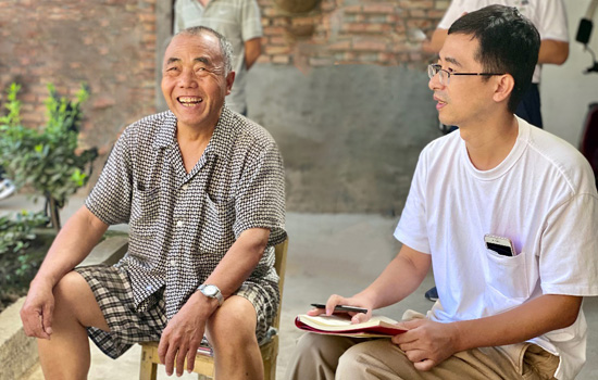 退休教師方長(zhǎng)奇(左)接受人民網(wǎng)大道康莊采訪組采訪。人民網(wǎng)趙岍攝