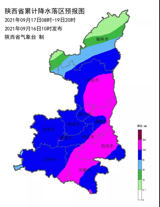陜西省氣象臺今天(9月16日)10時發(fā)布重要天氣報告:受高空槽和副高外圍暖濕氣流共同影響,9月17-19日我省自西向東有一次強降水過程,陜北中南部、關(guān)中、陜南大到暴雨,陜南局地大暴雨。
