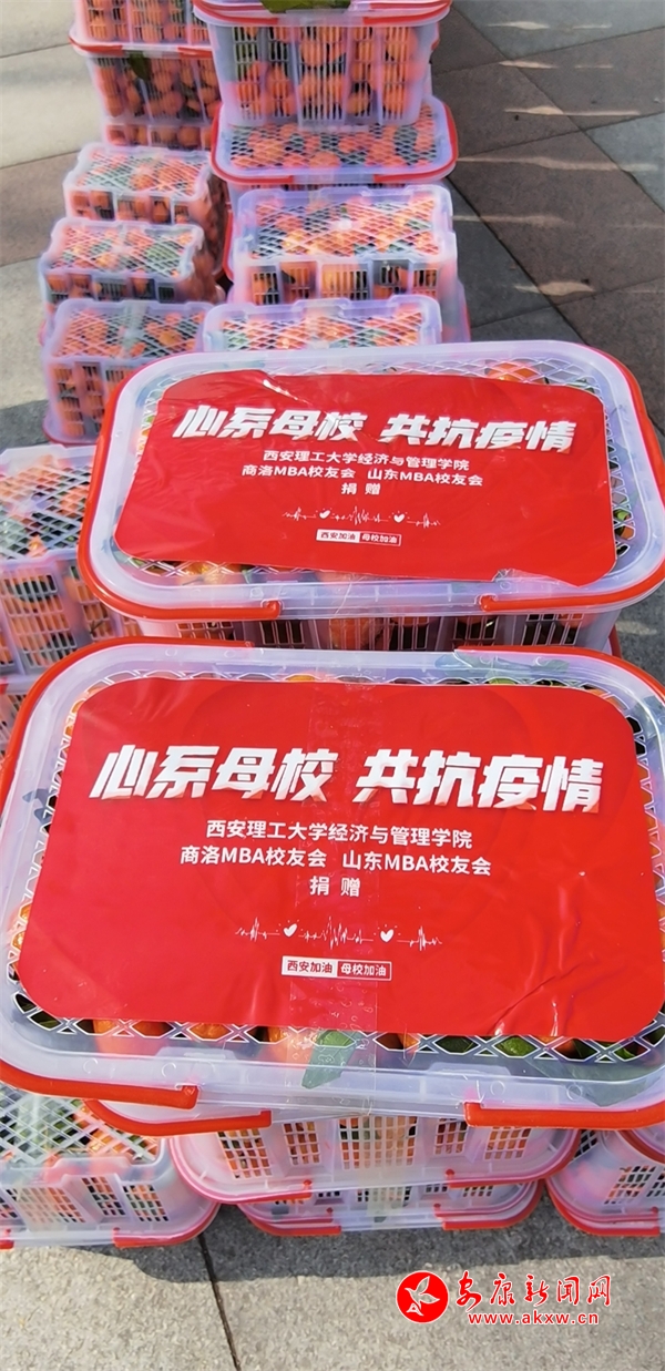 本網訊 冬月以來,西安突然爆發(fā)新型冠狀病毒變異毒株德爾塔的多起感染病例,此次疫情是自武漢疫情后最嚴重的一次集中爆發(fā),突然的爆發(fā)和迅速擴散讓西安這座往日繁華祥和的城市陷入了停擺,突如其來的疫情也讓萬千在西安求學的學子猝不及防,西安理工大學也處于封校管控中,數(shù)萬在校師生實行制動管理,物資的供應日漸緊張,自疫情爆發(fā)后西安理工大學各地校友了解到學?挂呶镔Y短缺情況后紛紛伸出援手群策群力,為西安理工大學抗擊疫情積極捐款捐物,幫助在校師生共渡難關。處于秦嶺山區(qū)的商洛也面臨著嚴峻的防疫局面,但是巍峨的秦嶺山脈依然阻擋不了商洛學子們心系西理的愛校之心,商洛MBA校友自疫情爆發(fā)后積極主動與學校聯(lián)系了解情況,得知母校面臨物資供應緊張的情況后,商洛MBA各屆班委迅速組織力量發(fā)動校友進行愛心捐款,各屆校友對母校的防疫工作也進行了大力支持,紛紛伸出援手支援母校,將籌集的善款匯同山東MBA校友會的捐款統(tǒng)一采購2000箱水果第一時間送到西安理工大學,讓在廣大在校學生感受到了來自秦嶺南麓校友們的關懷、來自遠在千里外山東校友的關心,東西雖然不多,但是一個橘子一個蘋果在這種特殊時期傳遞的是隔山跨海的溫暖,是甜到人心的力量,西安理工大學的學子在危情時刻講擔當,困難時候顯真情,一方有難八方支援,將西理學子一直以來的優(yōu)良傳統(tǒng)體現(xiàn)的淋漓盡致,同心抗疫溫暖前行,只要我們團結一心,眾志成城,就一定會戰(zhàn)勝疫情,讓我們共同期待春歸,靜待花開。望西理早日平安!望西安早日平安!